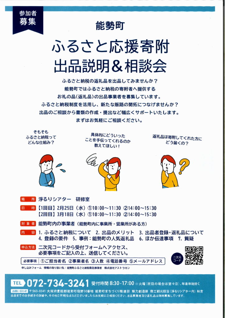 能勢町ふるさと応援寄付出展説明&相談会が開催されます